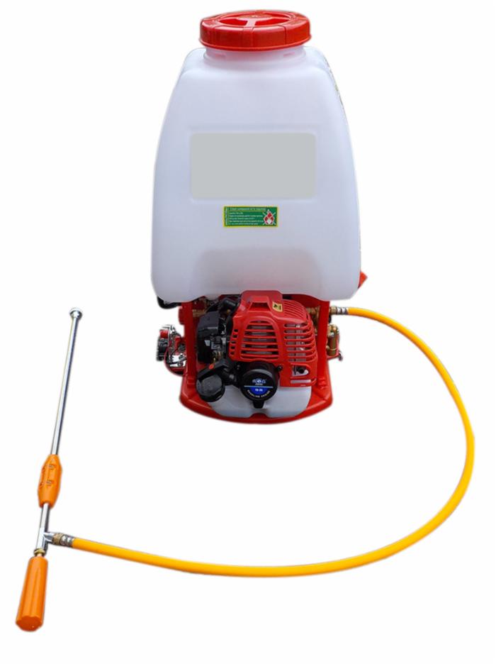 Pompa irroratrice a zaino con motore a scoppio 2 tempi e cilindrata 26 cc.