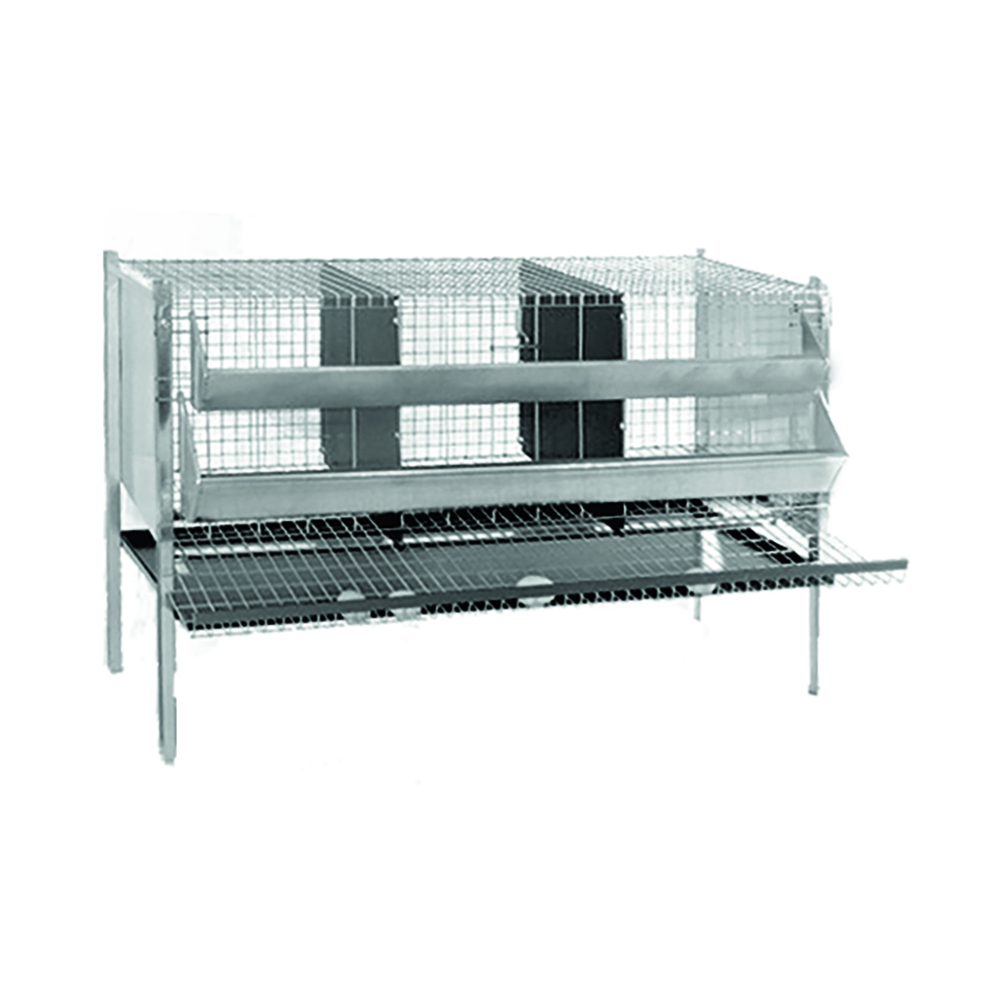 Gabbia galline ovaiole con 3 scomparti, fornita di mangiatoia, abbeveratoio e padella raccolta feci.